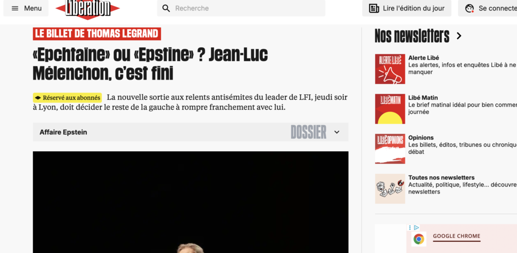 Rappelons que c’est de ce petit monde parisien que cette constante diffamation a été utilisée contre JLM depuis 2023.